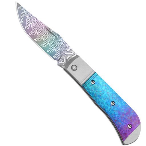 View full detailsKizer Ki3761A4 Trestle (Rainbow Damascus, Acid-Washed, Clip Point, Aluminum/Titanium) Slip Joint Pocket Knife