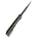 The ergonomic green G10 handle ensures a secure and comfortable grip, while stainless steel liners, pivot, and hardware finished in black PVD add durability and a sleek tactical look. The liner lock system with caged ceramic ball bearing washers ensures smooth, safe opening and reliable blade retention. With an overall length of about 7.80″ and a balanced weight, the Thalia remains easy to carry while offering solid utility and strength for everyday and outdoor use.