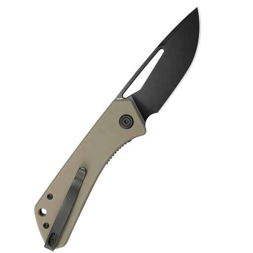 Kubey KU331U Thalia (14C28N, Drop Point, Blackwash, Tan G10) Front Flipper EDC Pocket Folding Knife