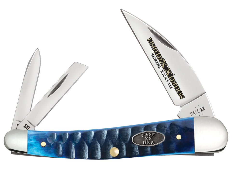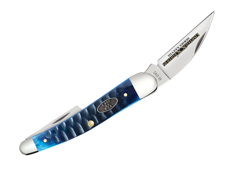 Introducing the 2025 Case XX 53983 Seahorse Whittler XX Limited Edition XXXVIII set is a true celebration of craftsmanship and innovation. This exclusive collection showcases the debut of our Gator Jig handle. Each knife features a Case XX USA Oval Pewter Shield that perfectly complements the deep Ocean Blue handle color, and mirror-polished Tru-Sharp™ surgical steel blades etched with a special “Limited XX Edition” embellishment.