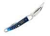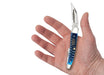 The Seahorse Whittler features three blades; Wharncliffe, Pen, and Coping blades. The Wharncliffe blade makes for an excellent general purpose utility knife. From handymen requiring a quick and easy go to tool on the job to office staff opening up boxes, the Wharncliffe blade is the blade of choice. This blade is great for cutting and has a finer edge/point for increased control. The pen blade is great for small detailed uses, especially for everyday use such as opening envelops and boxes. The coping blade is similar to a Sheepsfoot blade but with an angled point. It is used for making cuts in tight areas or curved cuts. This blade is popular with carpenters and electricians as it is similar to a coping saw but without the teeth and can be used to scratch lines in wood or other material.