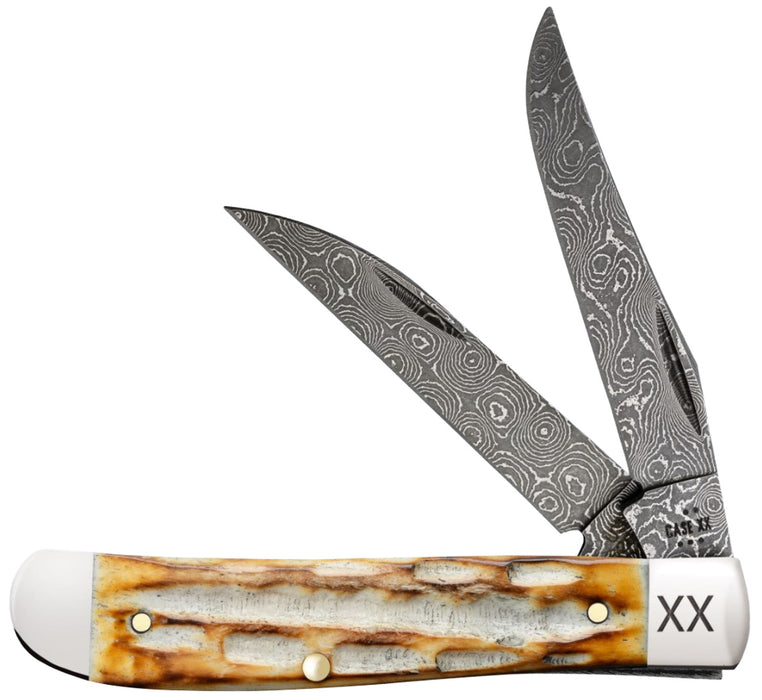 Case XX 27233 Mini Trapper (Burnt Natural Bone, Deep Canyon Jig, Damascus, Clip/Wharncliffe) Pocket Knife