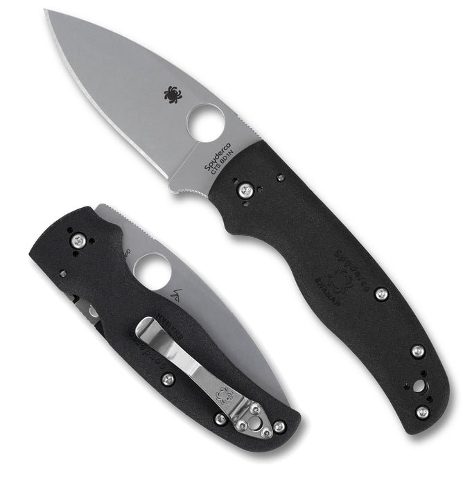 Spyderco C229PBK Shaman (CTS-BD1N, Stonewashed, Spear Point, Black, FRN) Lightweight Pocket Knife
